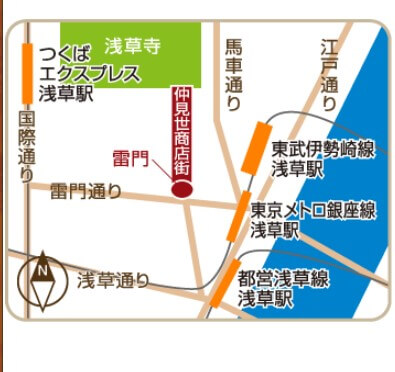 - 東武伊勢崎線:浅草駅より徒歩3分