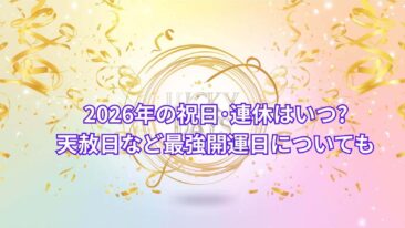 2026年(令和8年)の祝日スケジュールが知りたい、開運日に合わせて旅行やイベント計画を立てたい…という方に向けて、この記事では 2026年の祝日一覧・連休情報・最強開運日(天赦日・一粒万倍日・大安など) をわかりやすく整理してお届けします...