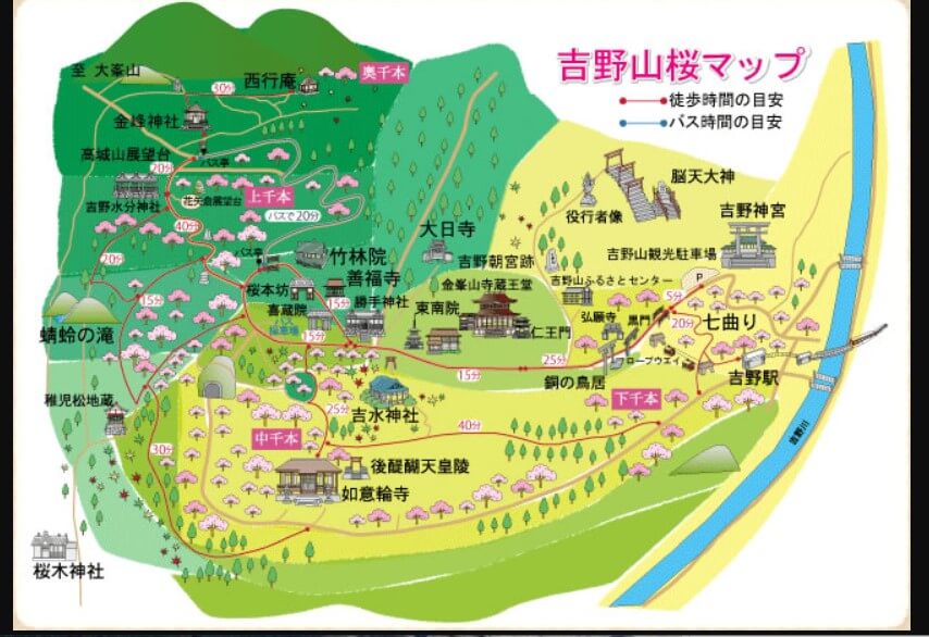 この記事では、吉野山の桜の見頃の時期やおすすめコースについて、また観光マップや駐車場情報についても調査していきたいと思います!